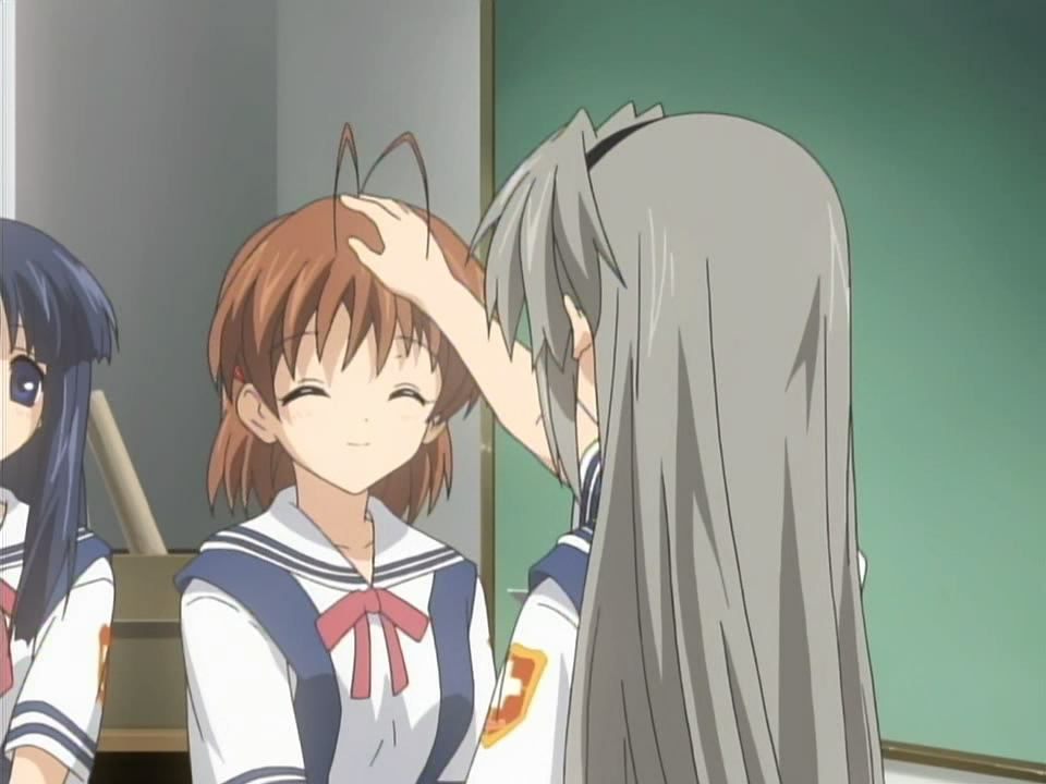朋也と結ばれたのが渚でよかったと渚の頭をなでる智代。智代は2年、渚は1年留年の3年なので、渚より2年も年下なのですが全く違和感が無いのは、智代の堂々とした態度ならではですね~w