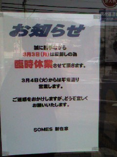 勝手ながら臨時休業と