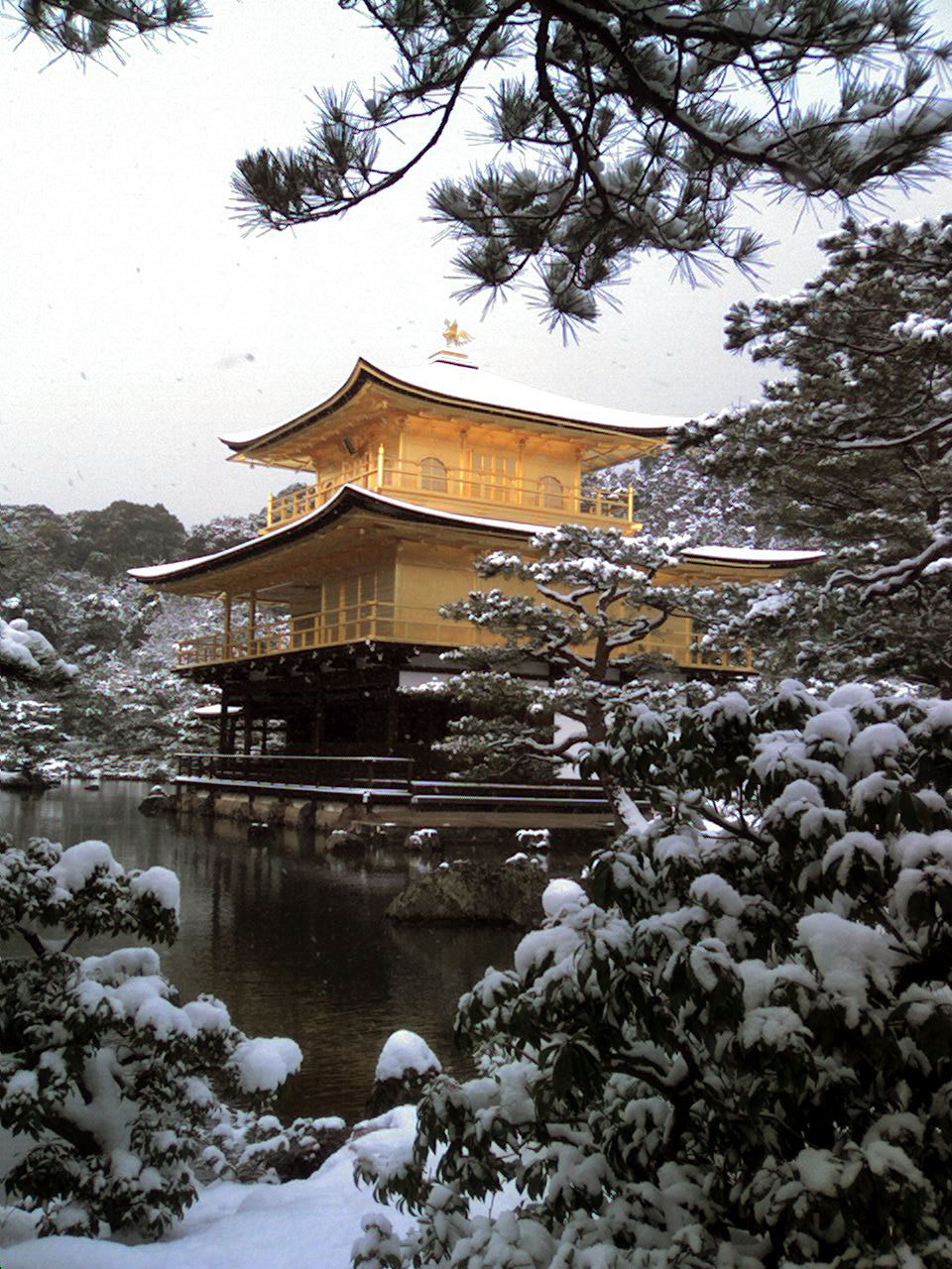 雪が積もった次の日の朝、雪がとけてしまう前に雪の金閣を見る。というのは、京都に住んでないとなかなか出来ないことです。京都でも朝まで雪が残ることは珍しいですから。